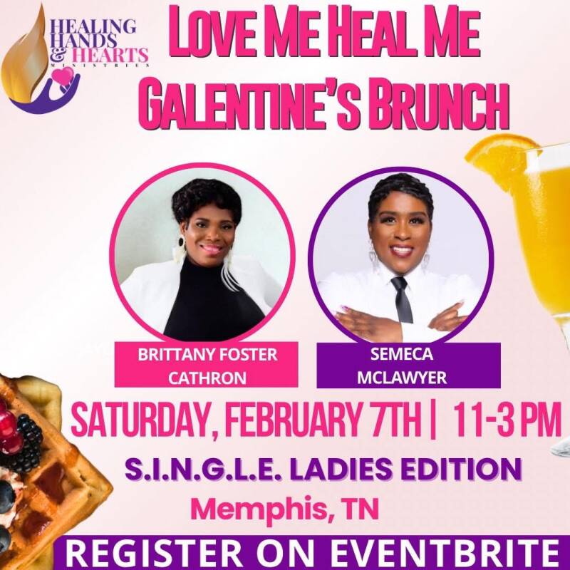🌸 Healing Hands and Hearts Ministries is proud to announce the Love Me Heal Me Galentines Brunch: S.I.N.G.L.E. Ladies Edition 🌸